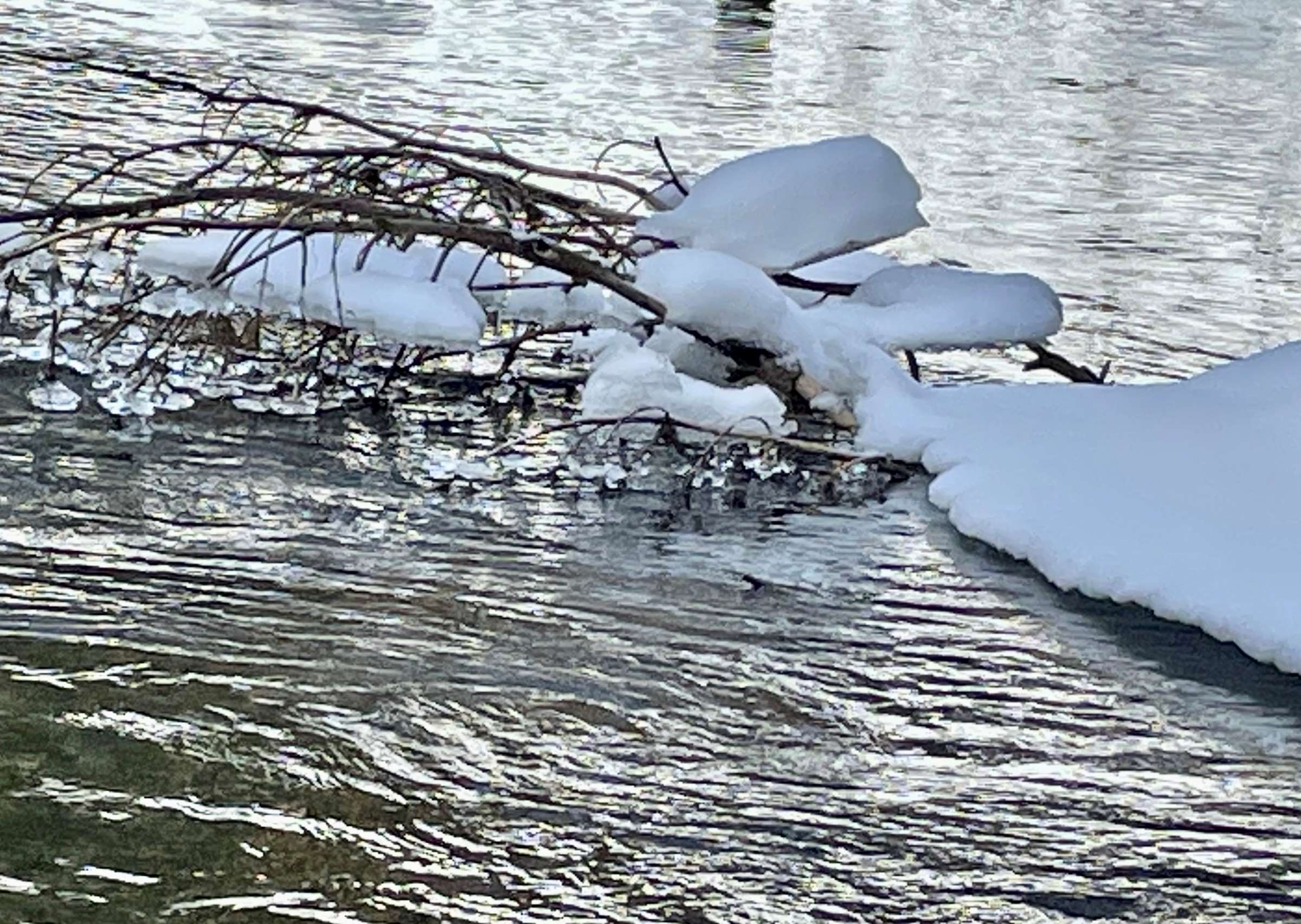 The Pine River’s water flowed slowly and smoothly, giving us plenty of time to observe the wintry wonders along our way.